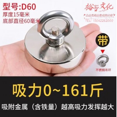 首页 > 建筑建材 > 五金附件 > 国为(COUVEZI)强磁打捞圆形磁铁吸盘大号吸铁石强吸力吊环钕磁铁户外河道打捞神器 1个装 D60打捞磁铁【直径60mm】 (zhyghf_221712468)SKU:yzwhyp910287