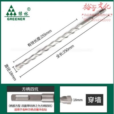 绿林(GREENER)冲击钻头电锤钻头四坑钻头混凝土钻穿墙方柄18*350(穿墙) (zhyghf_93500783)SKU:yzwhyp910369