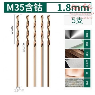 绿林(GREENER)含钴麻花钻头专用钨钢不锈钢木工打孔钢铁高硬度 1.8mm*5 (zhyghf_93500764)SKU:yzwhyp910412