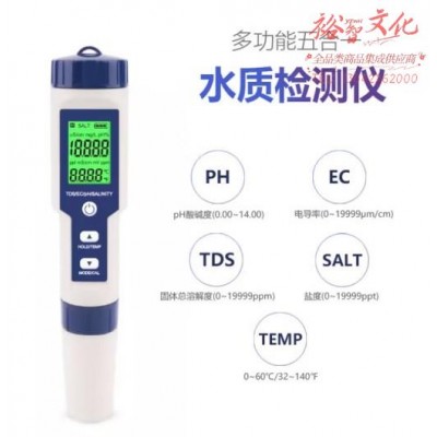 惠利得 PH计/盐度/温度/TDS/EC五合一水质测试仪分析仪便携式 数显检测笔 (zhyghf_23098228)SKU:yzwhyp910553