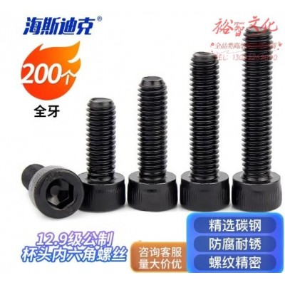 首页 > 建筑建材 > 五金附件 > 海斯迪克 12.9级公制杯头内六角螺丝DIN912发黑(淬火) 高强度螺栓加长螺钉HKsq-464 M4*14(全牙) 200个 (zhyghf_93501389)SKU:yzwhyp910890