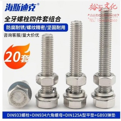 首页 > 建筑建材 > 五金附件 > 海斯迪克 HK-5021 304不锈钢外六角螺丝DIN933螺母套装 全牙四件套 M8*30(20套) (zhyghf_93501419)SKU:yzwhyp910944