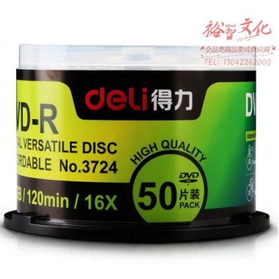 首页 > 广播、电视、电影设备 > 组合音像设备 > 会议、广播及音乐欣赏系统 > 得力(deli)DVD-R空白光盘刻录光碟碟片记录式DVD光盘 刻录盘 4.7GB/min 50片/筒 3724 (zhyghf_202400586)SKU:yzwhyp910987