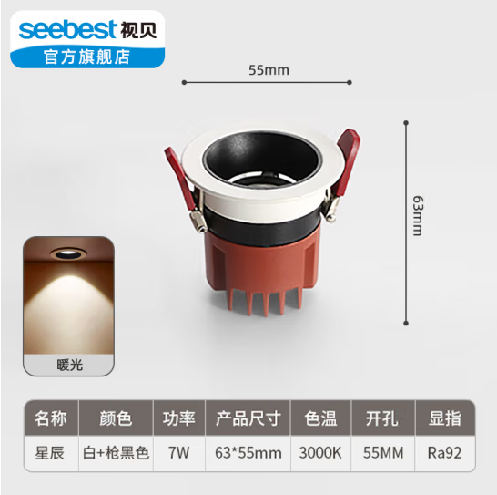 首页 > 电气设备 > 室内照明灯具 > 视贝 星辰射灯-90 高显7W黄光45°可调 LED筒射灯客厅卧室led嵌入式筒灯天花灯客厅灯牛眼灯 (zhyghf_221724112)SKU:yzwhyp911103