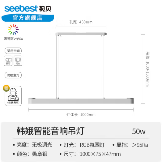 视贝 韩娥音响吊灯(金) LED现代简约蓝牙音乐灯音箱音响灯餐厅智能遥控灯 (zhyghf_221724177)SKU:yzwhyp911184