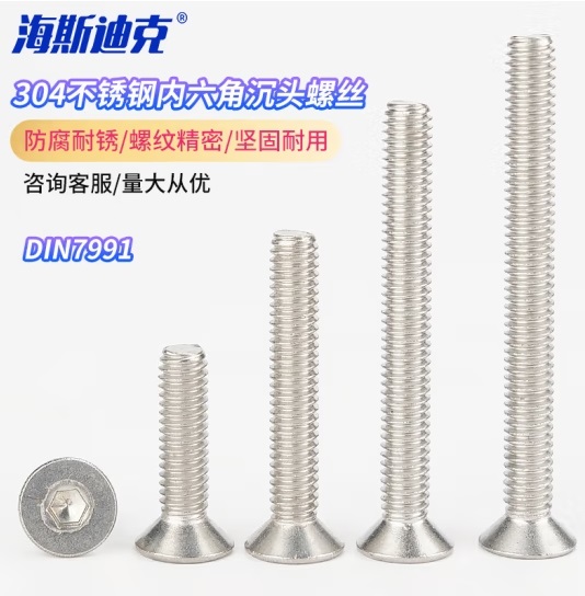 首页 > 建筑建材 > 五金附件 > 海斯迪克 304不锈钢内六角沉头螺丝 平杯螺钉DIN7991 HKsq-395 M5×50(100个) (zhyghf_93501442)SKU:yzwhyp911387