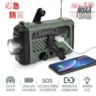 携便式太阳能应急收音机手电筒手摇发电充电宝防灾多功能装备灯 军绿色 (zhyghf_202410559)SKU:yzwhyp911451