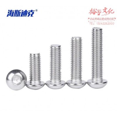 首页 > 建筑建材 > 五金附件 > 海斯迪克 HKYC-147 304不锈钢圆头内六角螺丝 半圆头盘头螺栓 蘑菇头内六角螺钉 M5*12(100个) (zhyghf_93501486)SKU:yzwhyp911452