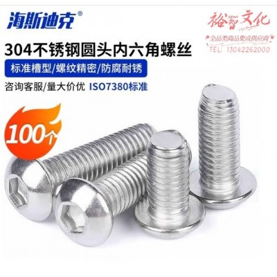 首页 > 建筑建材 > 五金附件 > 海斯迪克 304不锈钢圆头内六角螺丝 ISO7380 HKsq-564 M6*12(100个) (zhyghf_93501494)SKU:yzwhyp911491