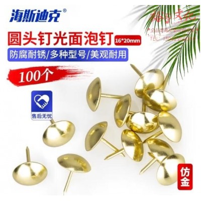 首页 > 建筑建材 > 五金附件 > 海斯迪克 HKDP-44 大头圆头钉 仿古钉大图钉 软包硬包装饰钉 仿金 16*20mm(100个) (zhyghf_93501513)SKU:yzwhyp911519