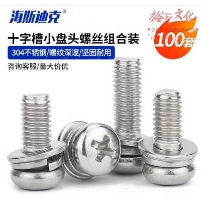 首页 > 建筑建材 > 五金附件 > 海斯迪克 HK-129 304不锈钢十字槽小盘头螺丝三组合 GB9074.8螺钉弹簧垫圈平垫组合装 M4*6(100套) (zhyghf_93501528)SKU:yzwhyp911539