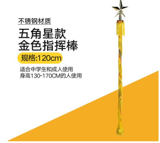 乐队指挥棒鼓号队儿童乐团90军鼓指挥旗 不锈钢材质 金色120cm (zhyghf_202410561)SKU:yzwhyp911693
