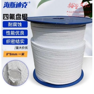 海斯迪克 HKqy-48 四氟盘根 耐高温耐酸腐蚀泵密封绳 白无油8*8mm 一米 (zhyghf_93501501)SKU:yzwhyp911828