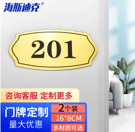 首页 > 建筑建材 > 其他防护用品 > 海斯迪克 HK-394 工业用门牌号(2个) 门牌号码牌 定制标识牌 房号牌 店铺数字贴 房间楼层指示牌 款式五 (zhyghf_27002093)SKU:yzwhyp911846