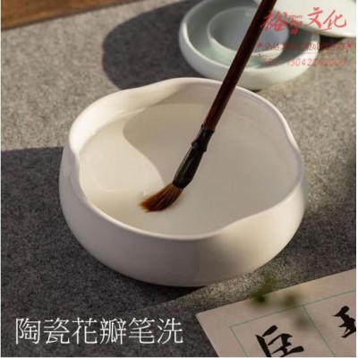 御宝阁 花瓣陶瓷笔洗书法专用水盂文房摆件储水涮墨毛笔缸 (zhyghf_23097236)SKU:yzwhyp911902