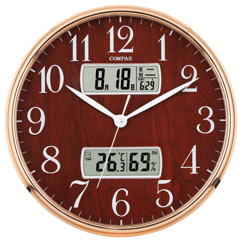 首页 > 仪器仪表 > 钟 > 康巴丝(COMPAS)客厅挂钟 客厅万年历石英钟表挂墙卧室时钟日历温湿度挂表 3231-2亚克力红木纹盘(zhyghf_983200093)SKU:yzwhyp911922