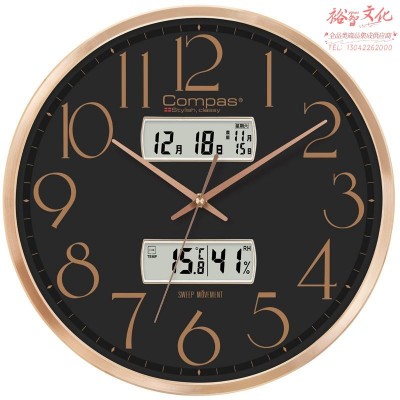 康巴丝(COMPAS)挂钟 创意万年历石英钟表挂墙客厅卧室时钟日历温湿度挂表 C3240-2 黑色(zhyghf_983200095)SKU:yzwhyp911924