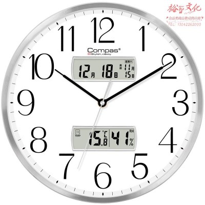 首页 > 仪器仪表 > 钟 > 康巴丝(COMPAS)挂钟 创意万年历石英钟表挂墙客厅卧室时钟日历温湿度挂表 C3264-2 银色双显款(zhyghf_983200090)SKU:yzwhyp911925