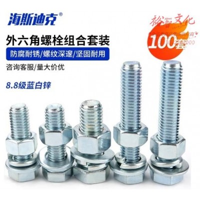 首页 > 建筑建材 > 五金附件 > 海斯迪克 蓝白锌外六角螺栓螺母平弹垫全牙套装GB5783 HKsq-580 M5*10(100套) (zhyghf_93501542)SKU:yzwhyp911939