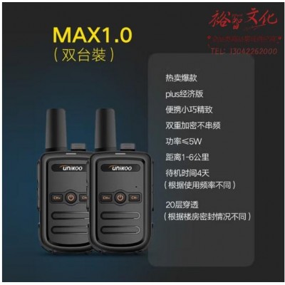 首页 > 广播、电视、电影设备 > 组合音像设备 > 会议、广播及音乐欣赏系统 > UNIKOO【双台装】对讲机 远距离 工地办公酒店安保餐饮户外大功率对讲机儿童迷你民用手台 MAX1.0经济版 (zhyghf_202400717)SKU:yzwhyp912001