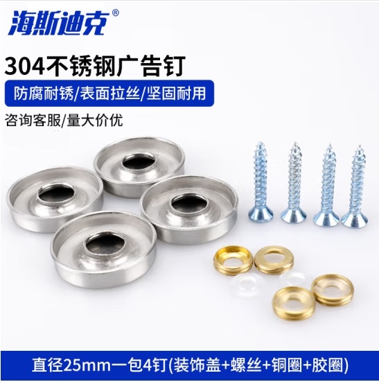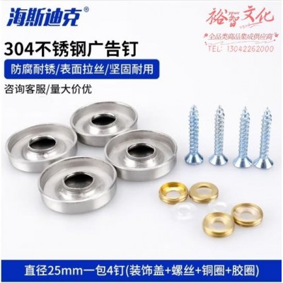 首页 > 建筑建材 > 五金附件 > 海斯迪克 HKQS-68 304不锈钢镜钉固定广告钉 直径25mm一包4钉(装饰盖 螺丝 铜圈 胶圈) (zhyghf_93501623)SKU:yzwhyp912012