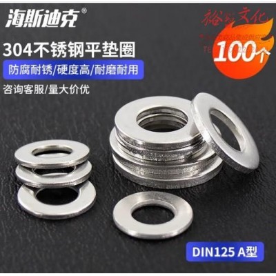 海斯迪克 HKDP-53 304不锈钢平垫圈 平垫片DIN125 A型 M8(100个) (zhyghf_93501629)SKU:yzwhyp912026