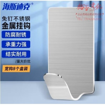 海斯迪克 HKqy-84 免钉不锈钢金属挂钩 无痕浴室门后强力黏贴 不锈钢宽钩8个盒装 (zhyghf_93501613)SKU:yzwhyp912041
