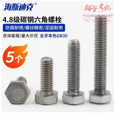 海斯迪克 4.8级碳钢六角螺栓 全牙本色GB30 HKsq-573 M22*60(5个) (zhyghf_93501562)SKU:yzwhyp912300