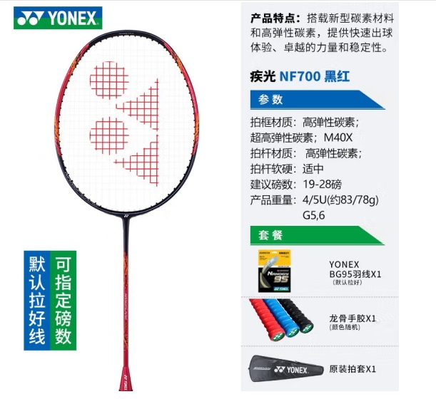 YONEX尤尼克斯羽毛球拍yy全碳素单拍职业疾光NF700蓝绿 空拍(zhyghf_30012290)SKU:yzwhyp912399