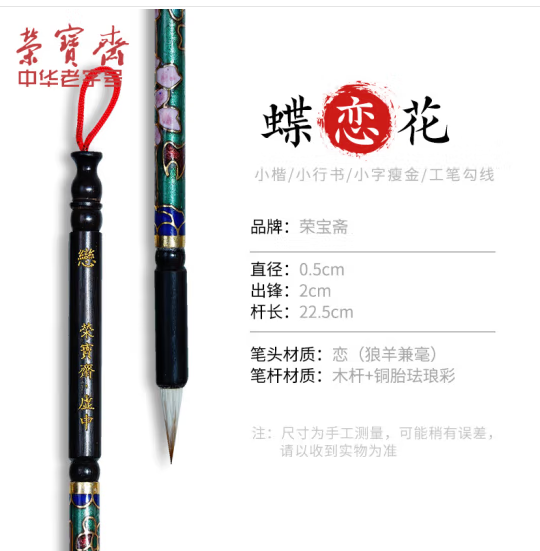 荣宝斋毛笔礼盒传统手工铜杆珐琅彩蝶恋花兔兼毫毛笔小楷字帖高档礼盒 花-兔狼兼毫单支 (zhyghf_23096931)SKU:yzwhyp912478