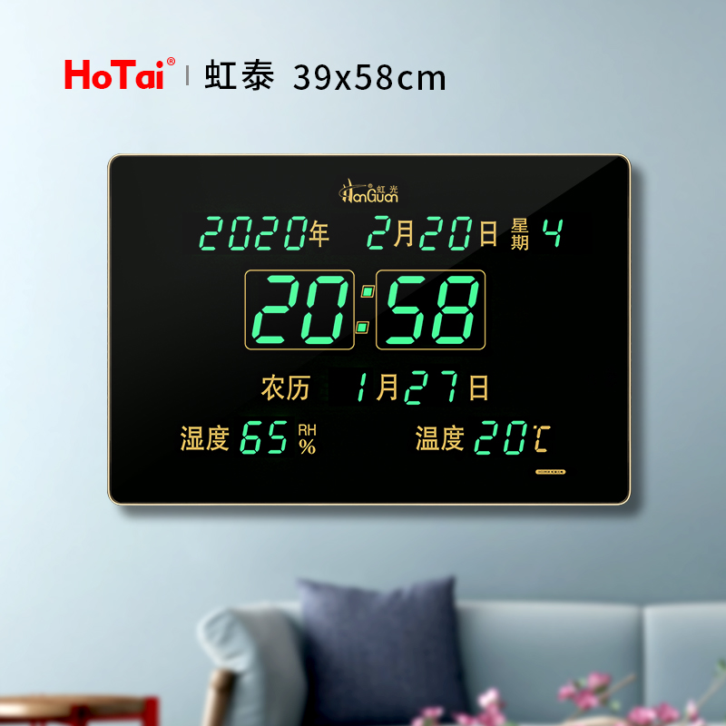 首页 > 仪器仪表 > 钟 > 虹泰(HoTai)led数码万年历电子挂钟 客厅创意电波钟日历表温湿度表挂墙3958 39x58cm-办公款绿光(智能感光) HG3958(zhyghf_980400165)SKU:yzwhyp912484