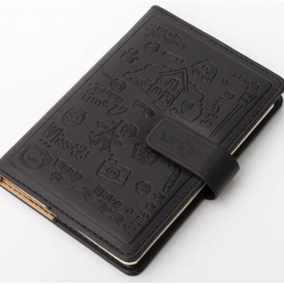 博文25K彩色扣装皮面记事本/笔记本(选用120张70g道林纸)黑色 991