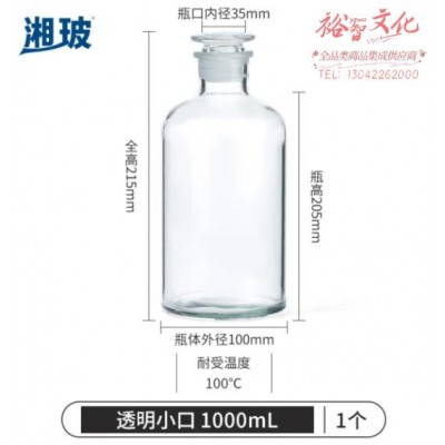 首页 > 仪器仪表 > 生物、医学样品制备设备 > 比克曼生物 湘玻 磨口瓶化学试剂瓶玻璃密封磨砂广口瓶小口收集气取样瓶棕色透明样品瓶实验室 【1000ml】透明小口 (zhyghf_221722244)SKU:yzwhyp912837