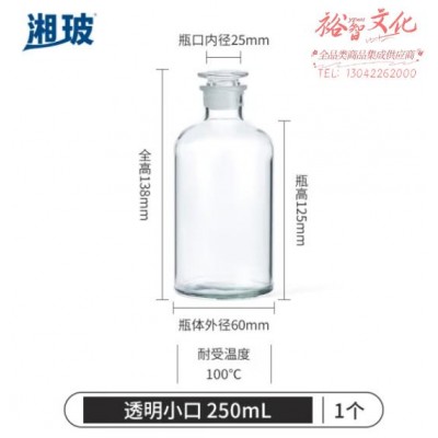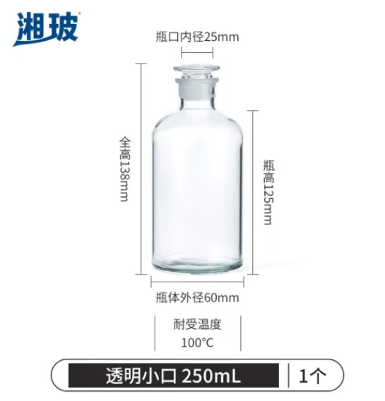 首页 > 仪器仪表 > 生物、医学样品制备设备 > 比克曼生物 湘玻 磨口瓶化学试剂瓶玻璃密封磨砂广口瓶小口收集气取样瓶棕色透明样品瓶实验室 【250ml】透明小口 (zhyghf_221722242)SKU:yzwhyp912839