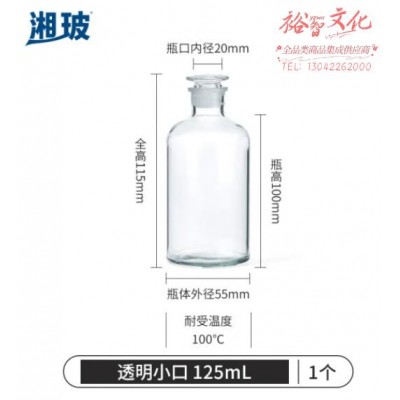 首页 > 仪器仪表 > 生物、医学样品制备设备 > 比克曼生物 湘玻 磨口瓶化学试剂瓶玻璃密封磨砂广口瓶小口收集气取样瓶棕色透明样品瓶实验室 【125ml】透明小口 (zhyghf_221722241)SKU:yzwhyp912840