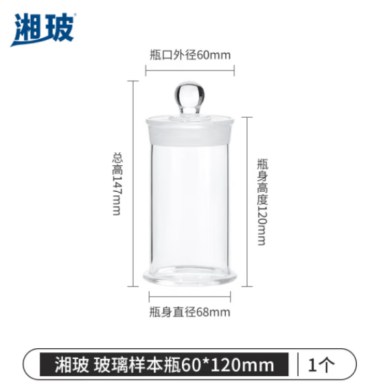 首页 > 仪器仪表 > 生物、医学样品制备设备 > 比克曼生物 湘玻 玻璃标本瓶高硼硅展示瓶样品瓶实验瓶广口磨砂动植物加厚病理标本缸玻璃罐【60*120mm】1个 (zhyghf_221722083)SKU:yzwhyp912848