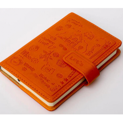 博文25K彩色扣装皮面记事本/笔记本(选用120张70g道林纸)橘黄色 991