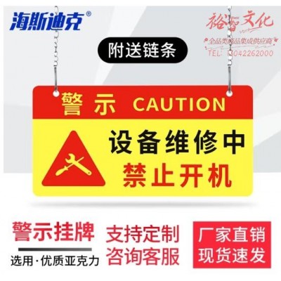 首页 > 建筑建材 > 其他防护用品 > 海斯迪克 亚克力挂牌 机器施工作业维修标识牌 24*12cm 设备维修中禁止开机 1个 HKL-1144 (zhyghf_27002390)SKU:yzwhyp913122