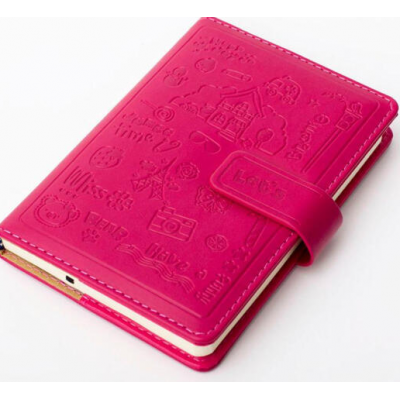 博文25K彩色扣装皮面记事本/笔记本(选用120张70g道林纸)玫红色 991