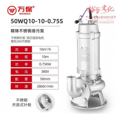 万保304不锈钢潜水排污泵工业潜污水泵50WQ10-10-0.75S-380V (zhyghf_23001117)SKU:yzwhyp913145