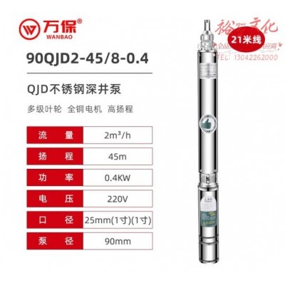 万保不锈钢深井泵家用潜水泵220v高扬挰 90QJD2-45/8-0.4 21米线 (zhyghf_23001124)SKU:yzwhyp913157