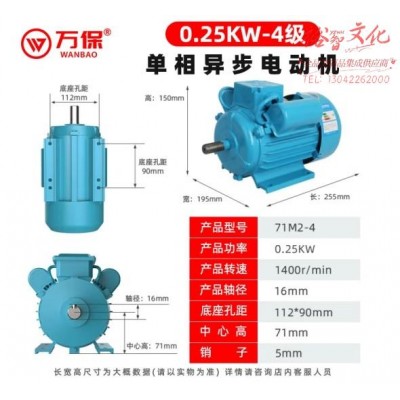 万保单相电机220V两相异步电动机马达 单相0.25KW-4级/1400转-全铜 (zhyghf_23001132)SKU:yzwhyp913167