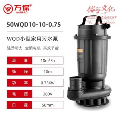 万保WQD小型家用污水泵农用大流量小型污水泵 50WQD10-10-0.75-380V (zhyghf_23001129)SKU:yzwhyp913174