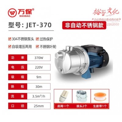 万保304不锈钢家用增压泵自来水抽水泵喷射泵自吸泵 370W非自动 (zhyghf_23001127)SKU:yzwhyp913180