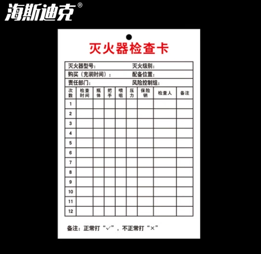 首页 > 建筑建材 > 其他防护用品 > 海斯迪克 HKL-344 灭火器检查卡记录登记卡 每月记录表巡查卡 卡片XZQ-03(100张) (zhyghf_27002260)SKU:yzwhyp913221
