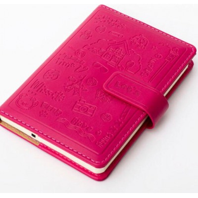 博文50K彩色扣装皮面记事本/笔记本(选用120张70g道林纸)玫红色 992