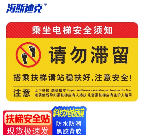 首页 > 建筑建材 > 其他防护用品 > 海斯迪克 HK-5008 商场乘坐扶梯提示地贴 耐磨防滑 车站电梯安全须知请勿停留标识牌 T15款50×80cm (zhyghf_27002205)SKU:yzwhyp913229
