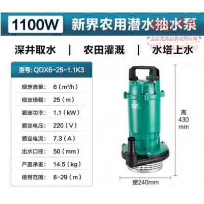 首页 > 建筑建材 > 电动工具 > 新界抽水泵潜水泵家用大流量高扬程农用灌溉清水泵水井水塔220V 6方25米扬程1100W/两寸 (zhyghf_23001156)SKU:yzwhyp913258