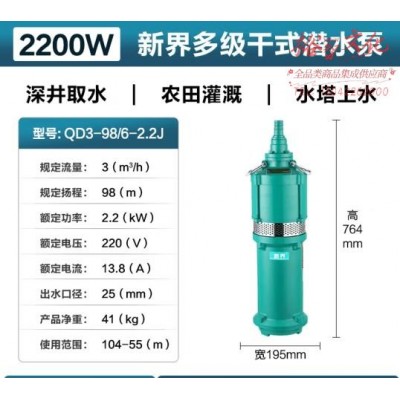 首页 > 建筑建材 > 电动工具 > 新界增压泵干式抽水泵220V农田灌溉农用家用潜水泵井用取水高扬程水泵 QD3-98/6-2.2J (zhyghf_23001153)SKU:yzwhyp913265