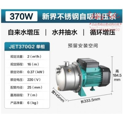 新界增压泵不锈钢喷射泵自吸泵水井水塔抽水泵家用自来水管道提升泵 JET370G2 (zhyghf_23001160)SKU:yzwhyp913288